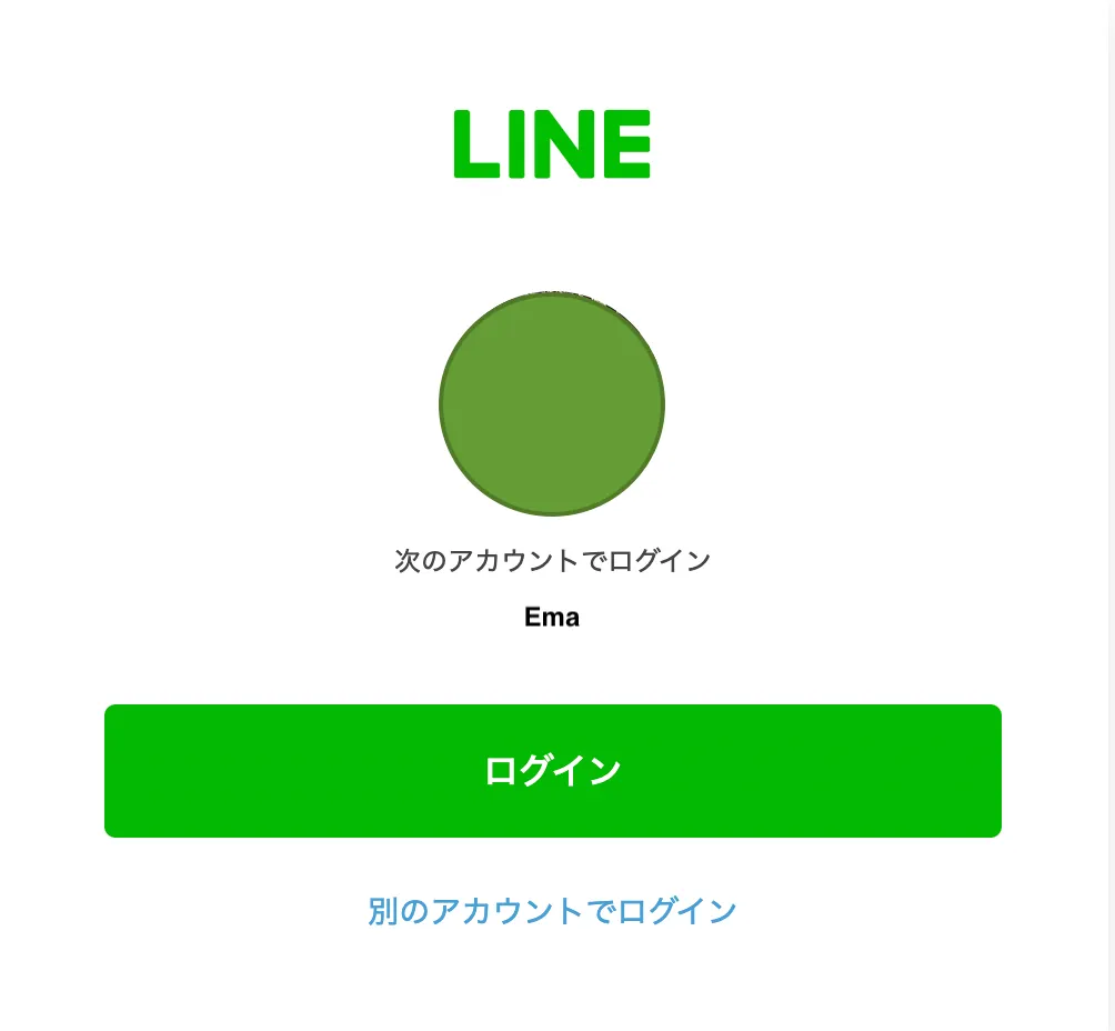 表示とは別のLINEアカウントでログインをしたい場合、[別のアカウントでログイン]をタップし、別のLINEアカウントのメールアドレスをパスワードを入力して[ログイン]をタップしてください。