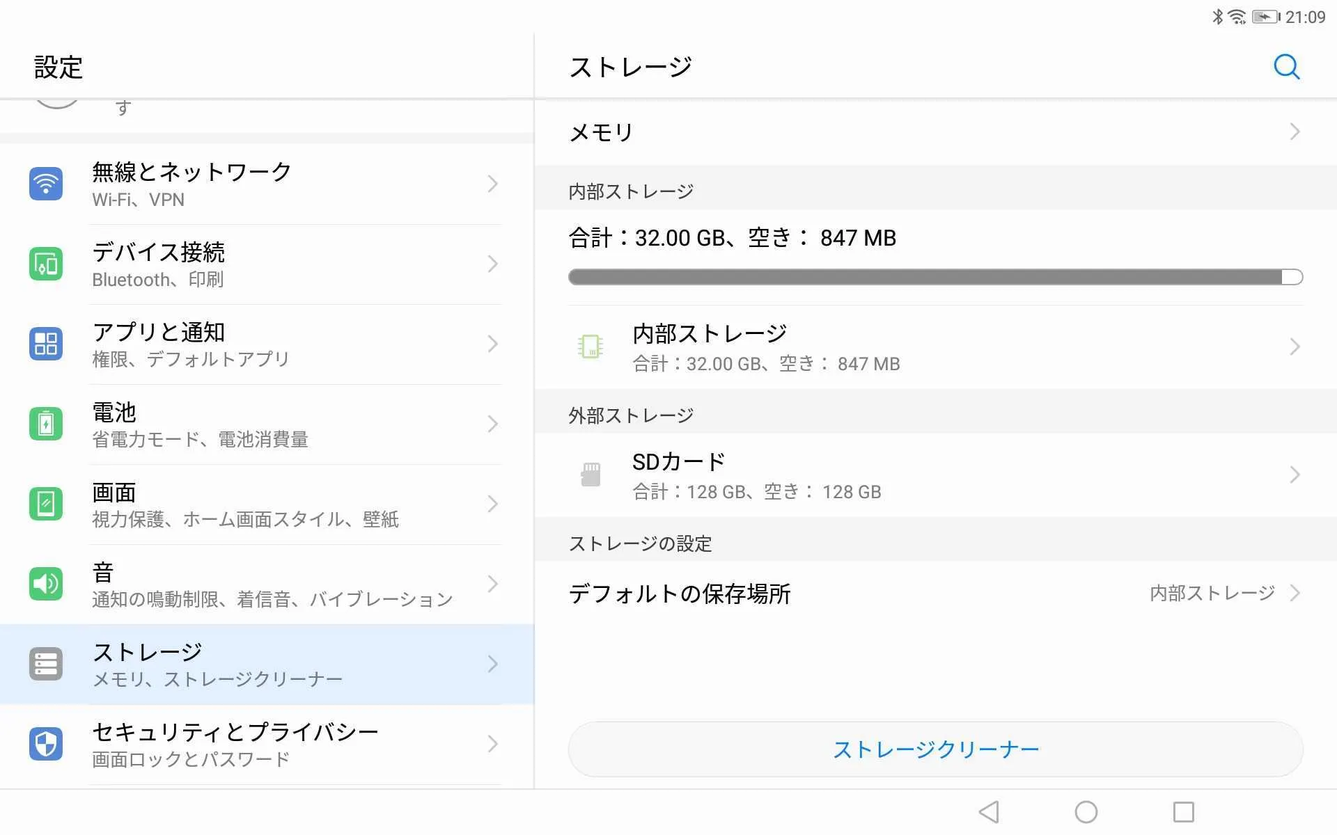 [設定]>[ストレージ]もしくは、[設定]>[デバイスケア]で空き容量をご確認ください。空き容量が500MB未満の場合、保存容量を確保してください。