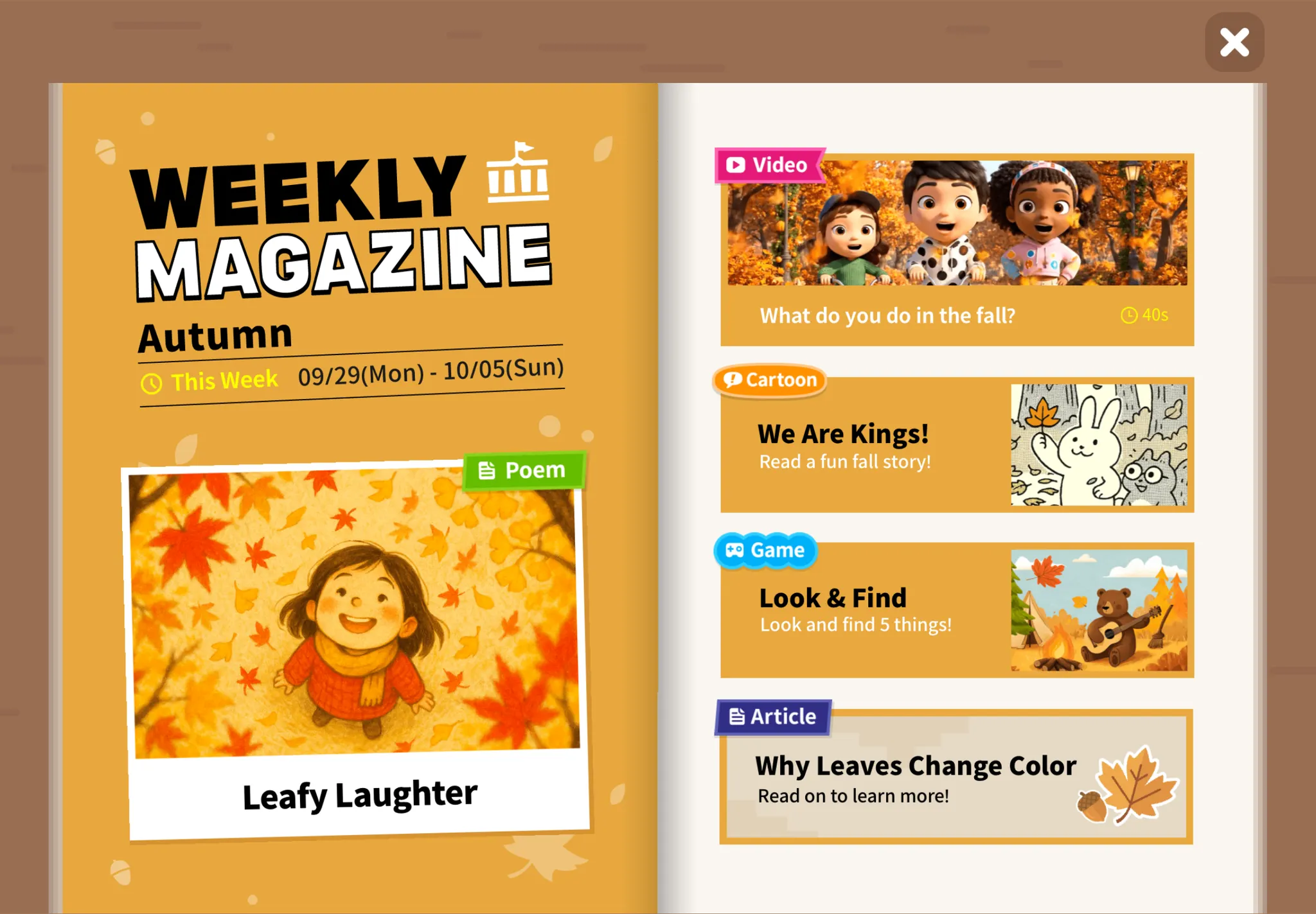 文章、動画、マンガ、ゲームなどで構成される期間限定のコンテンツで、毎週新しいマガジンが発行されます。