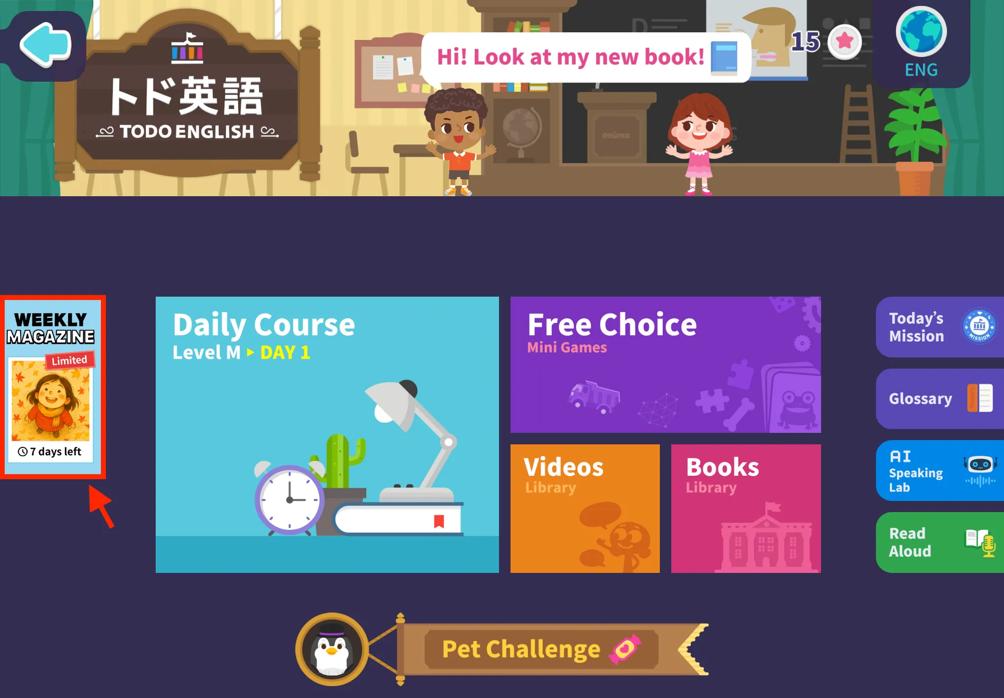 毎週月曜日に発行されるWEEKLY MAGAZINEは、日曜日まで学習ができます。