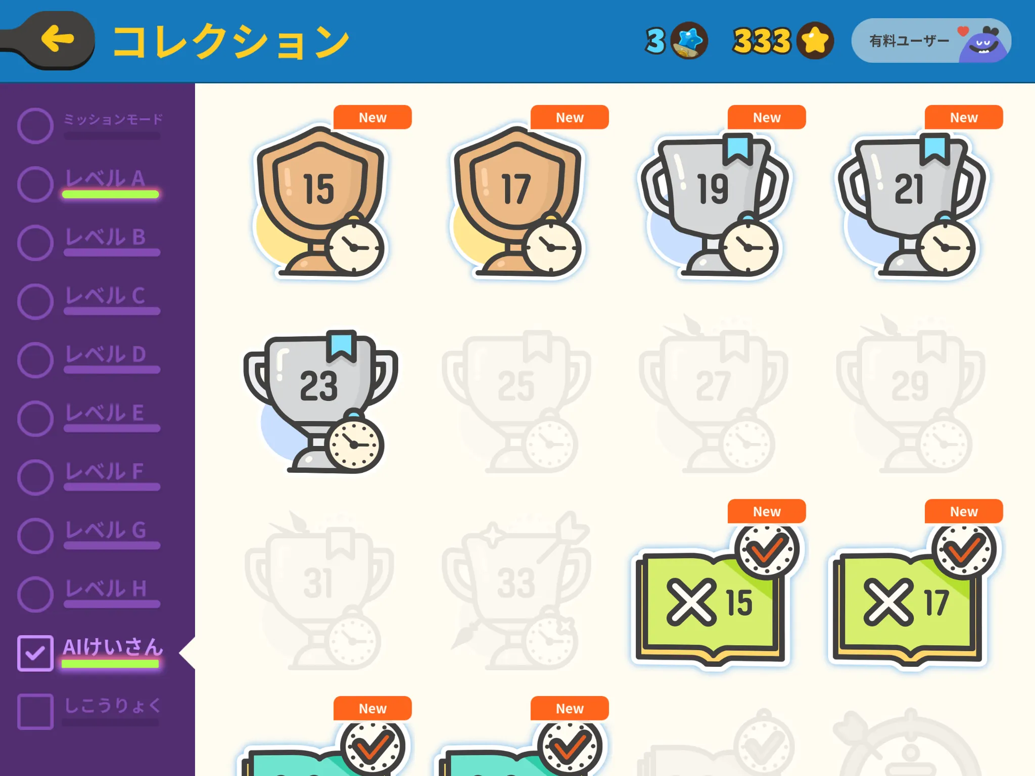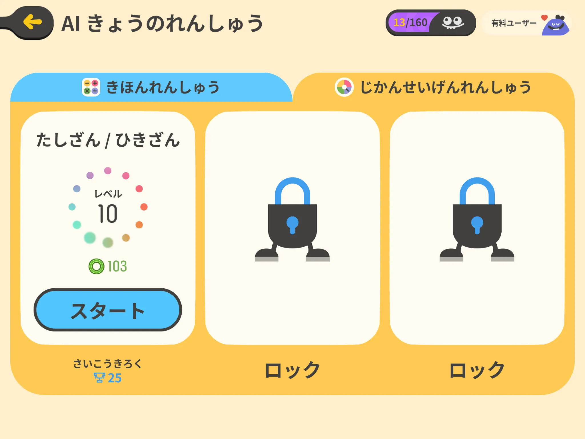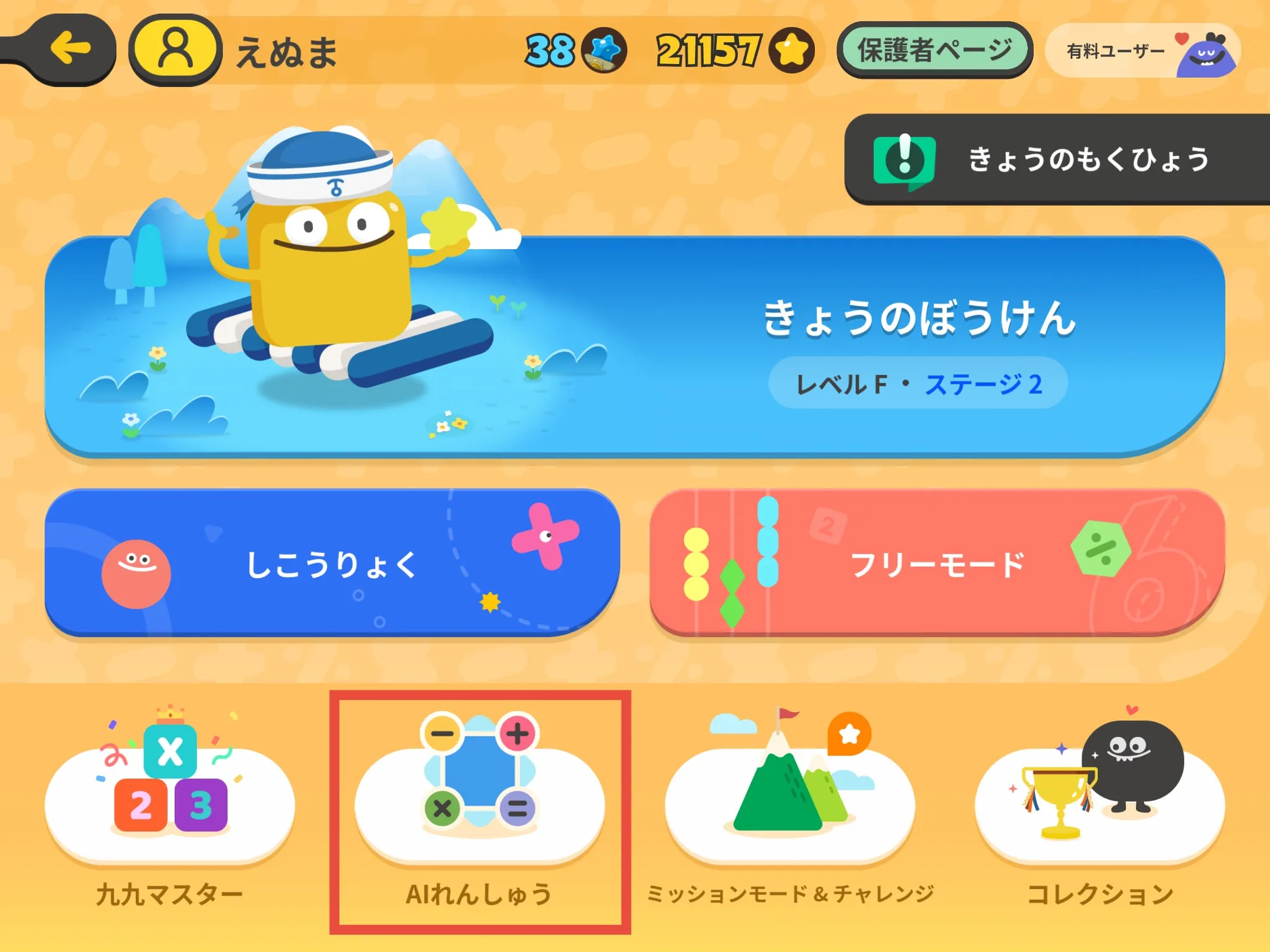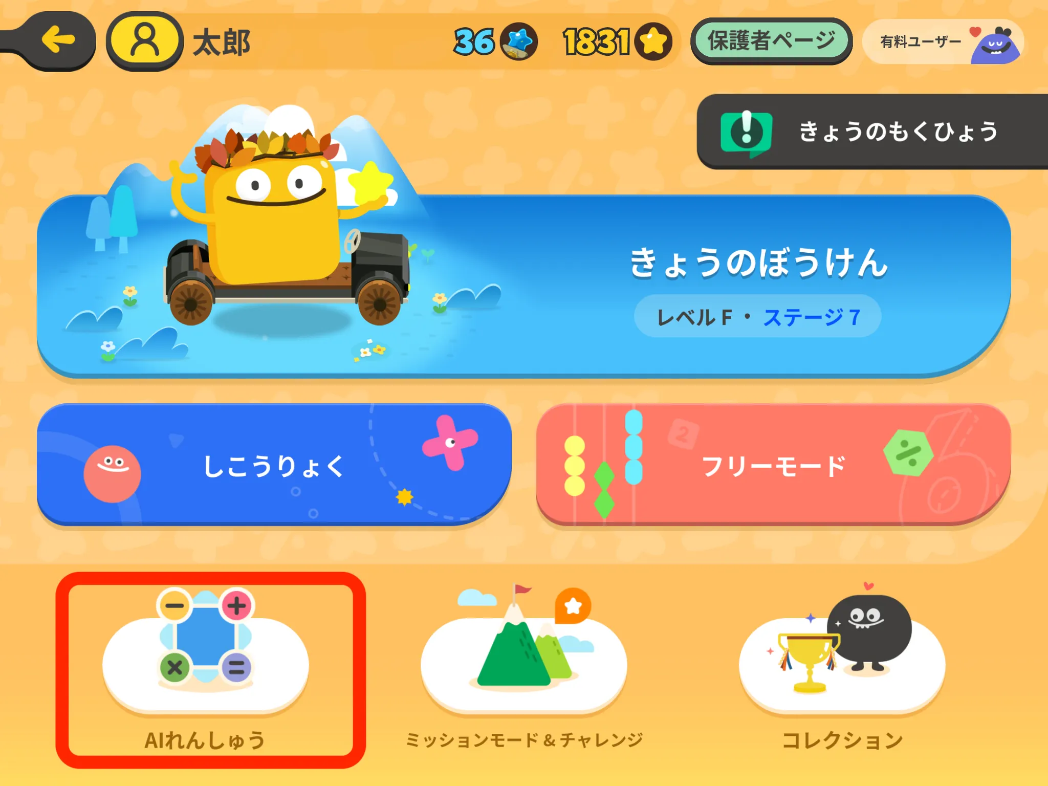 レベルCから出現し、AIがお子さまのレベルに合った計算問題を自動で作ってくれるモードです。