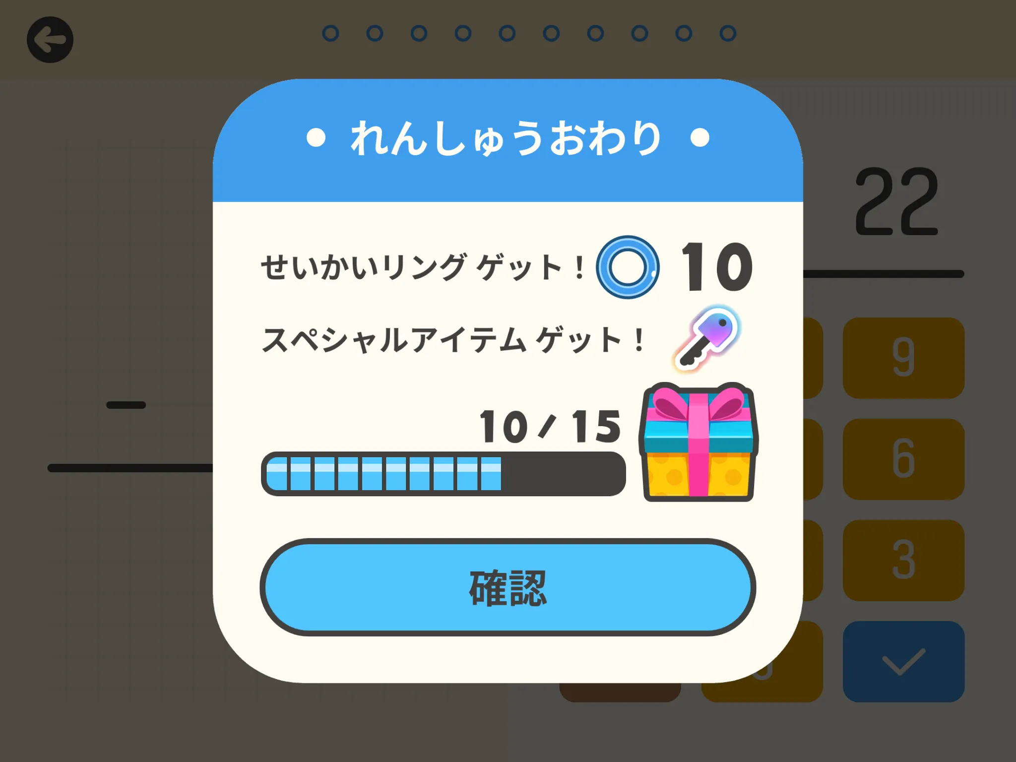 問題に正解する度に「せいかいリング」がもらえ、ゲージがいっぱいになると「ほし」がゲットできます。