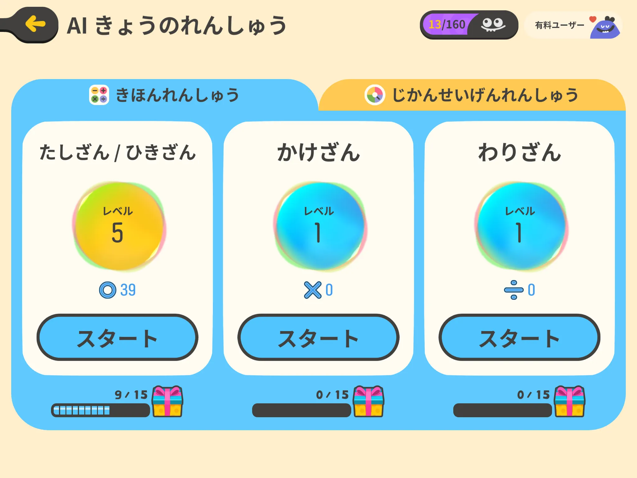 きほんれんしゅう、じかんせいげんれんしゅうの2つのプレイモードがあります。