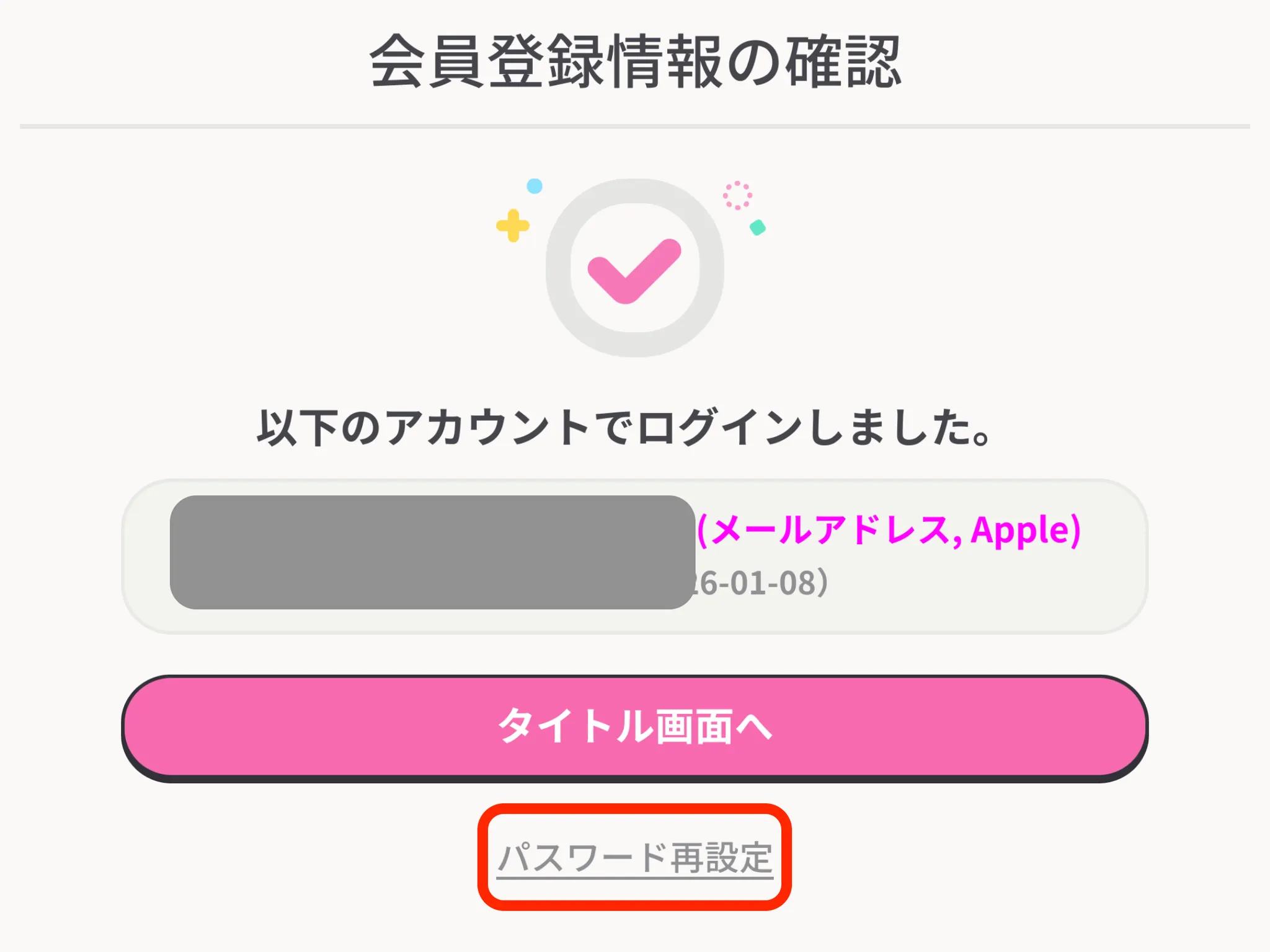 ただしAppleでログイン(会員登録)をされた場合のみ、公式サイトへログインするにはメールアドレスとパスワードが必要です。詳しくはこちらをご覧ください。