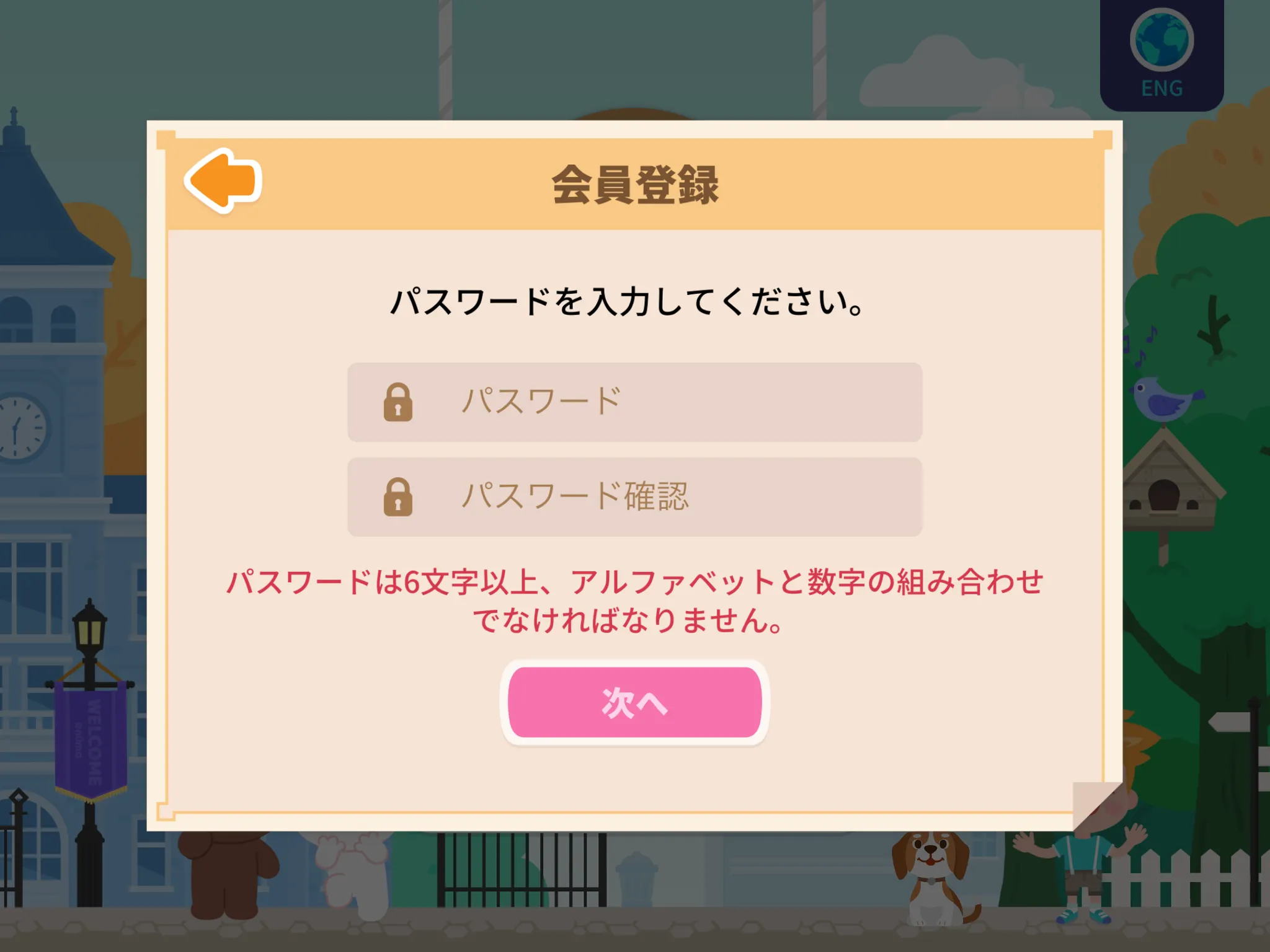 2、メールアドレスを入力後、「メールで会員登録」をタップすると、パスワードを設定する画面に移ります。※パスワードは英字と数字を含む6文字以上の組み合わせで入力してください。