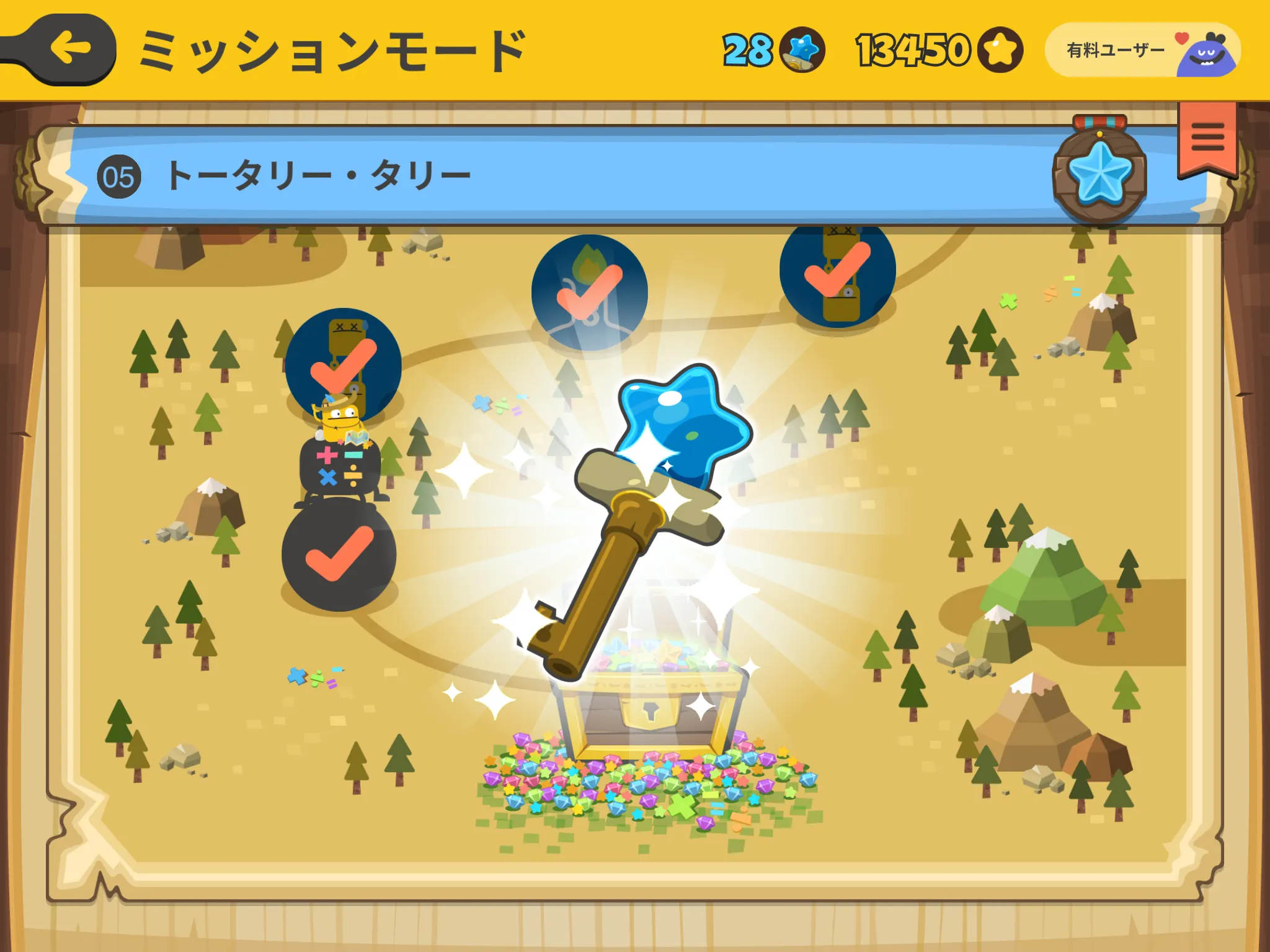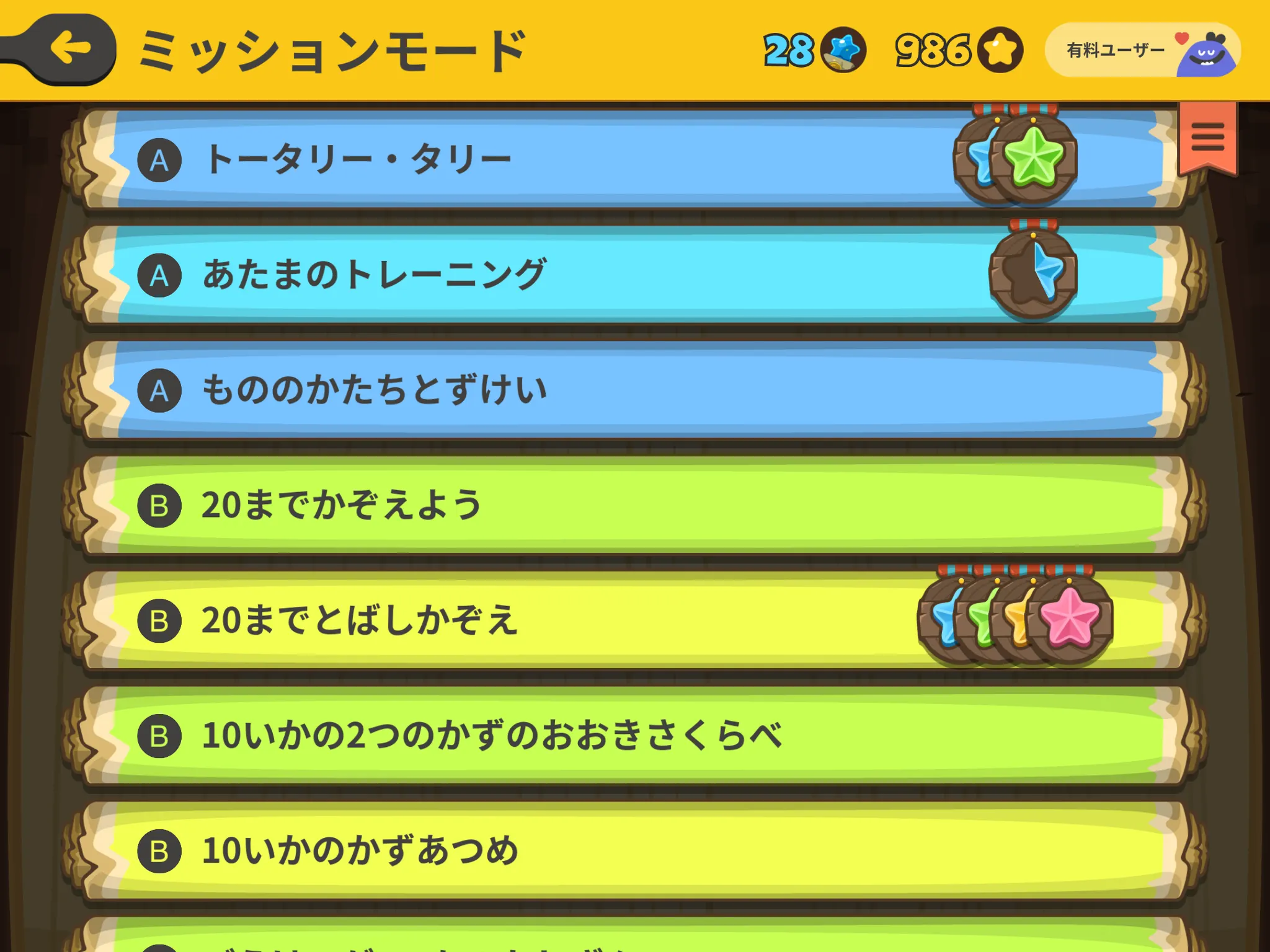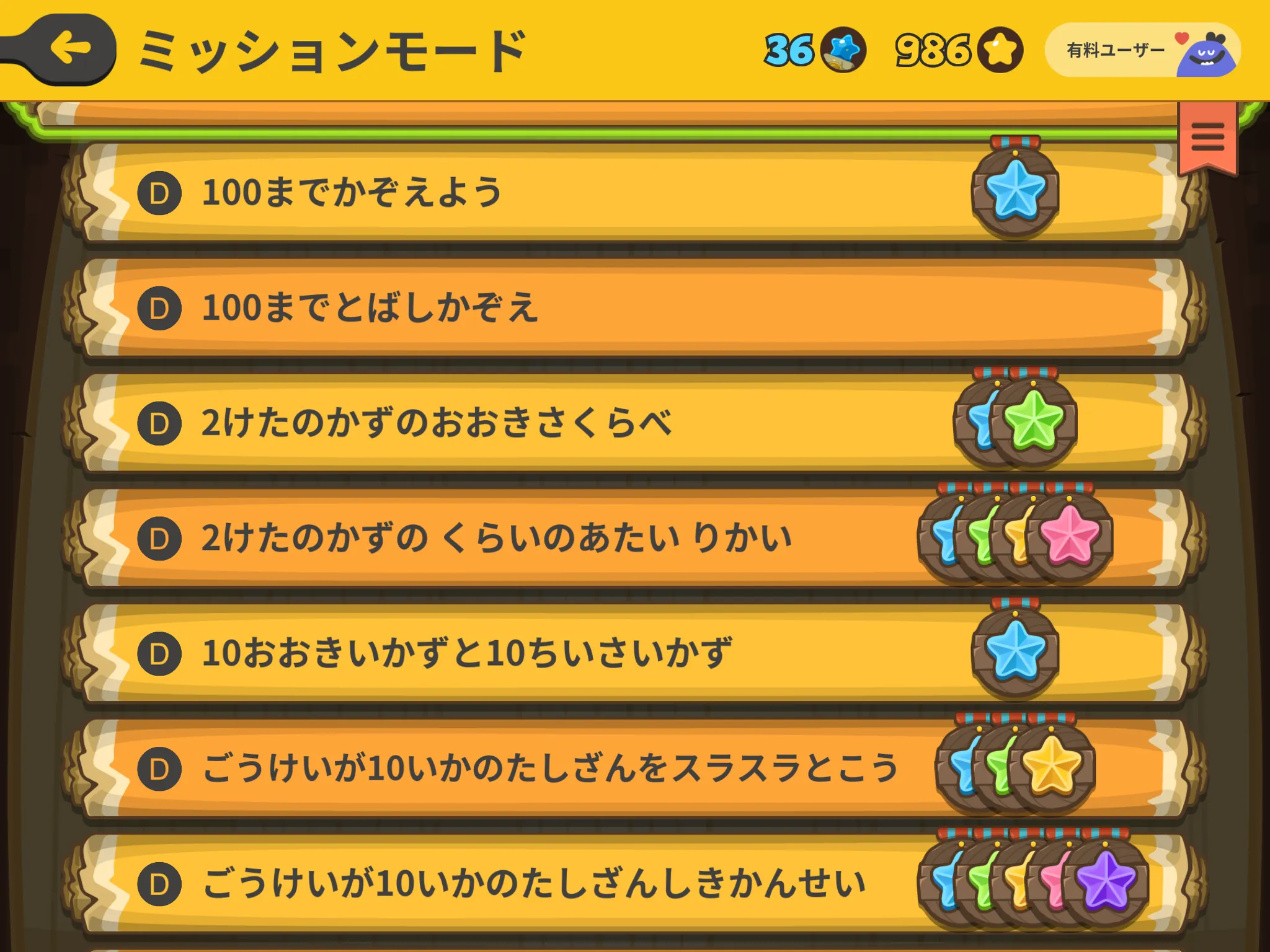 クリアしたミッションには、星のメダルがつきます。