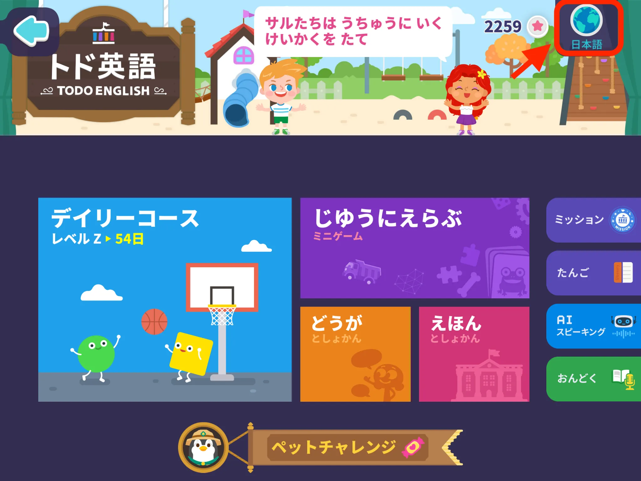 ※ 一部コンテンツは日本語のまま変わりません。トド英語はオールイングリッシュには対応しておりませんので、ご了承ください。
