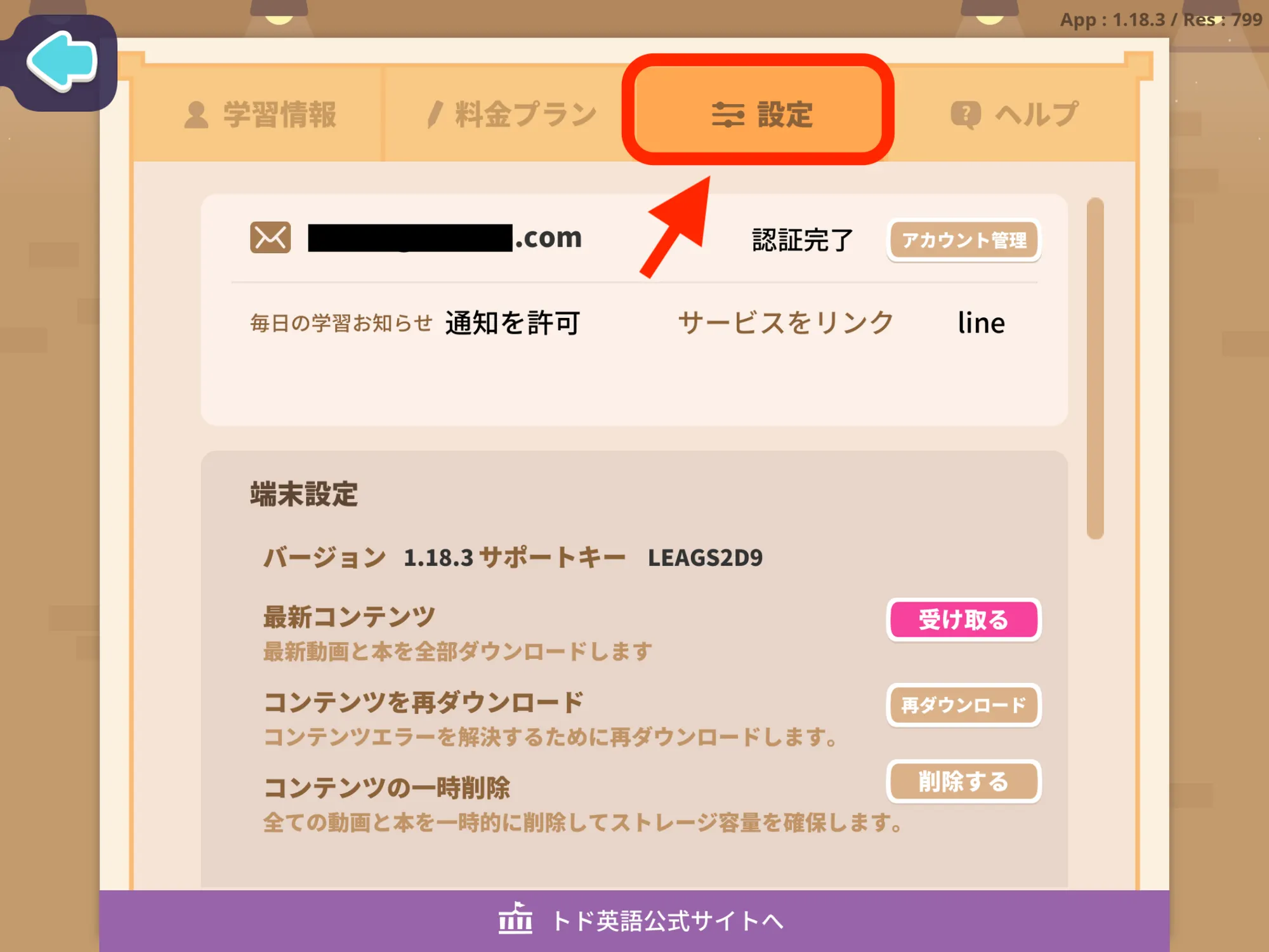 [Parents]>[設定]タブをタップしてください。