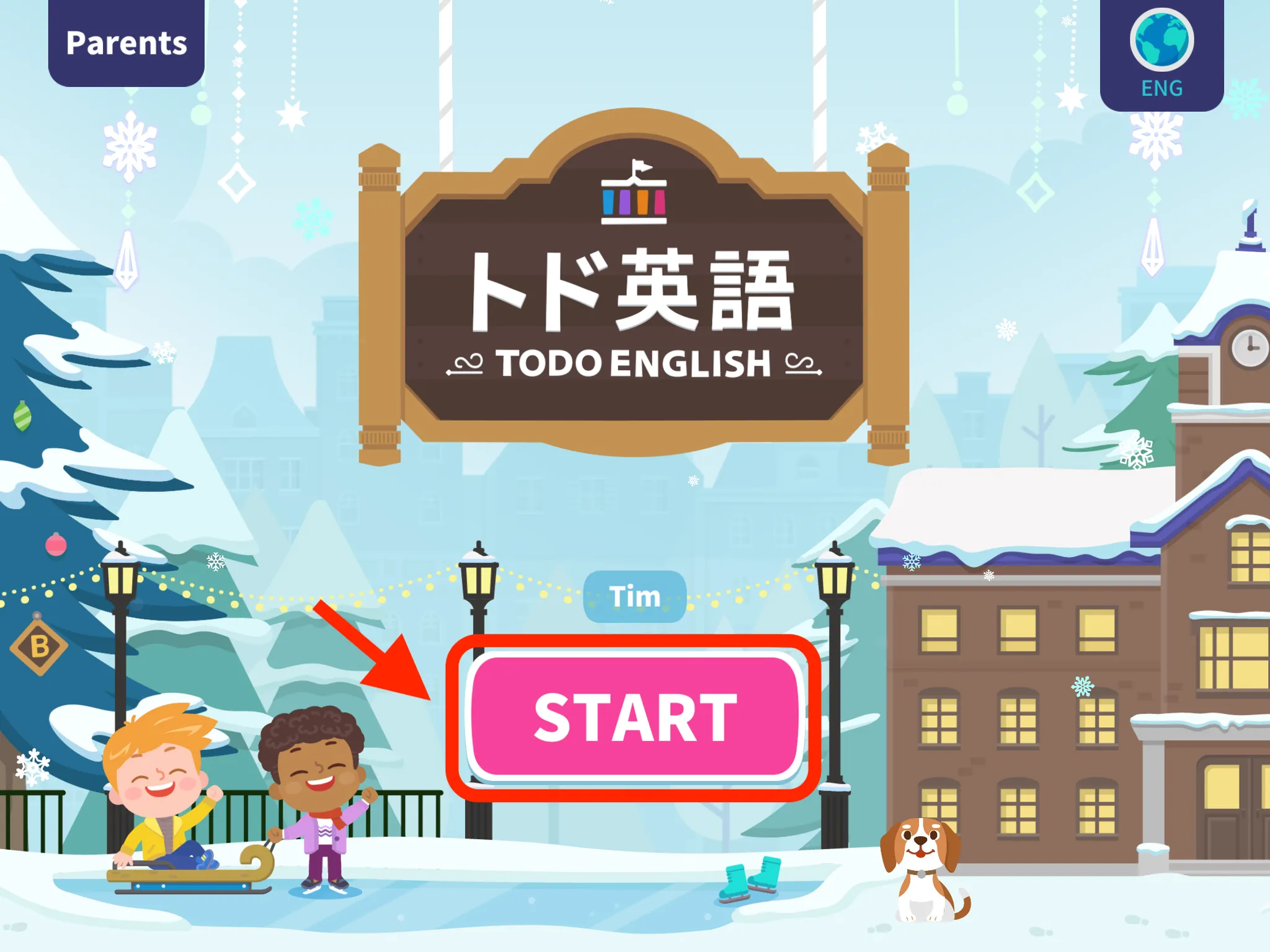 最初のスタート画面から、学習するお子さまの名前をタップすることでプロフィールを選択し、[START]をタップして学習メニューページへ移動します。