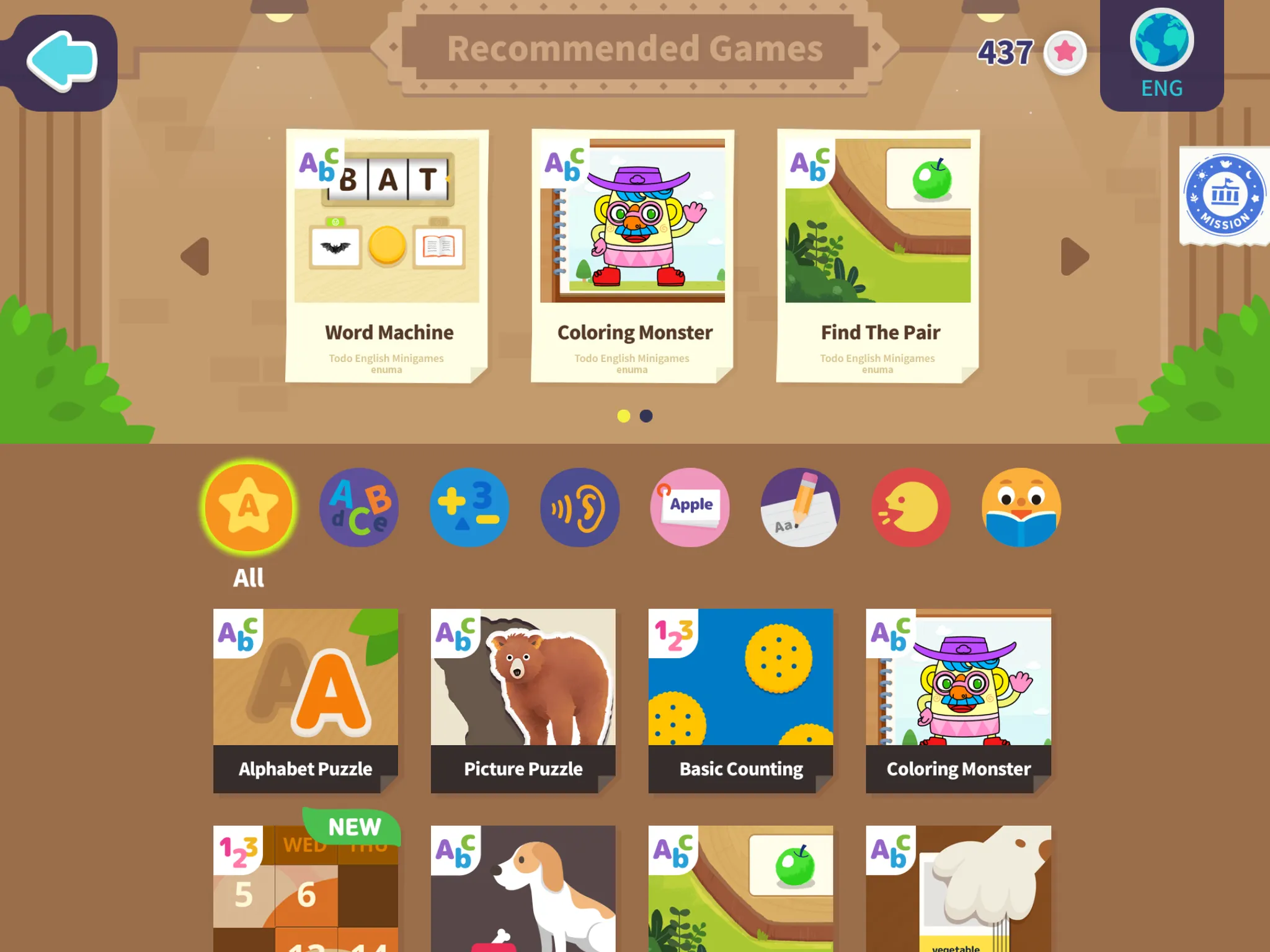 ・じゆうにえらぶ(Free Choice)で1日に2〜3つプレイし、英語を楽しく学びます。