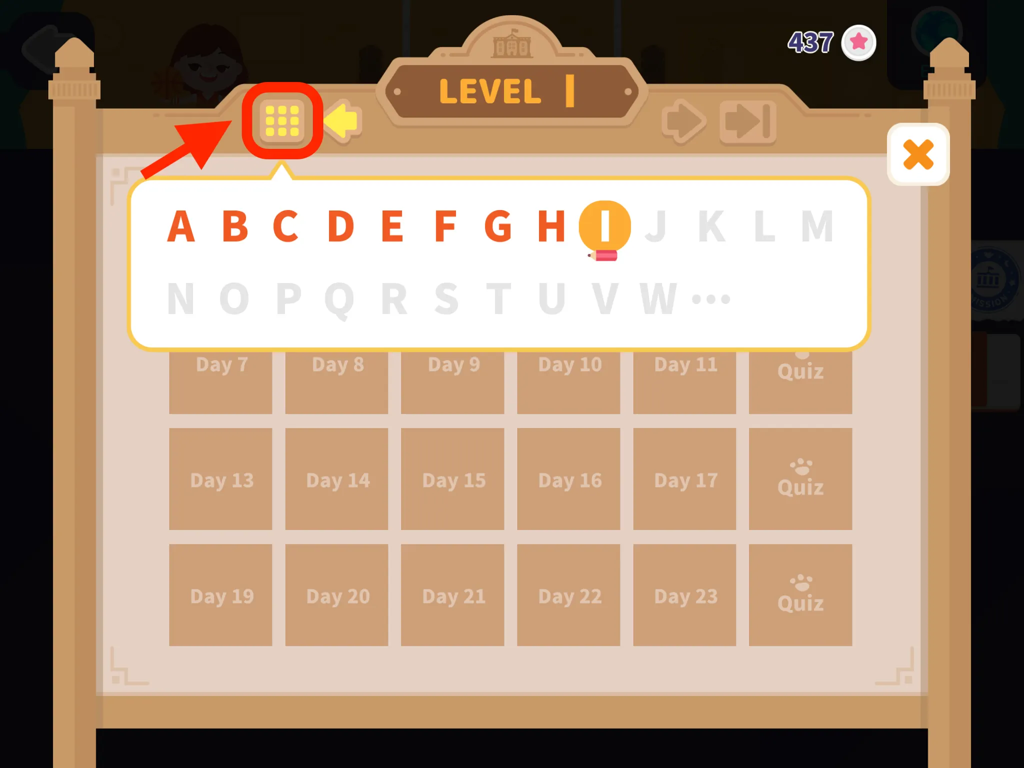 左上のマークを選択すると、復習ができるレベルを選択できますので、レベルを選択後にDayを選択ください。