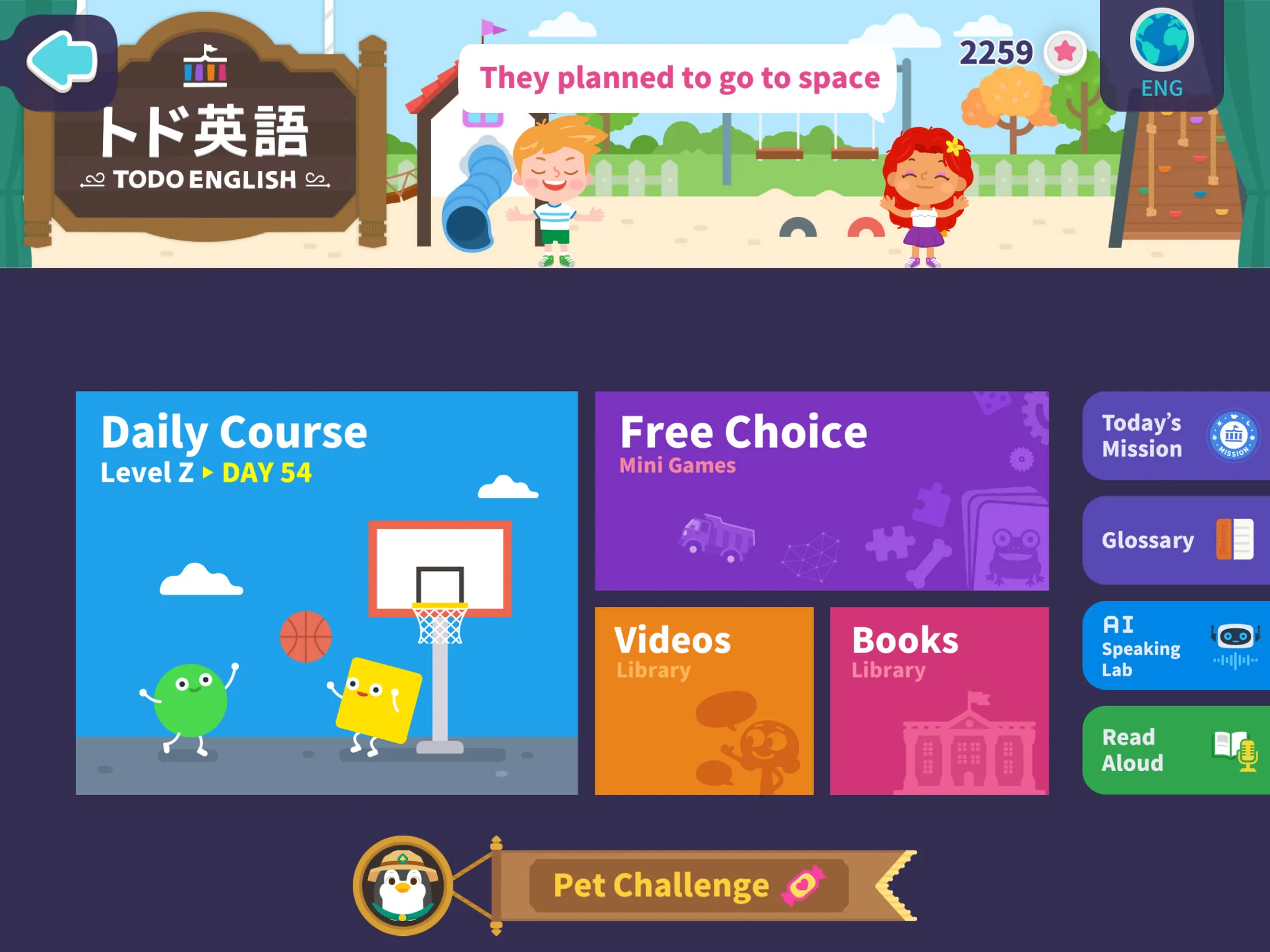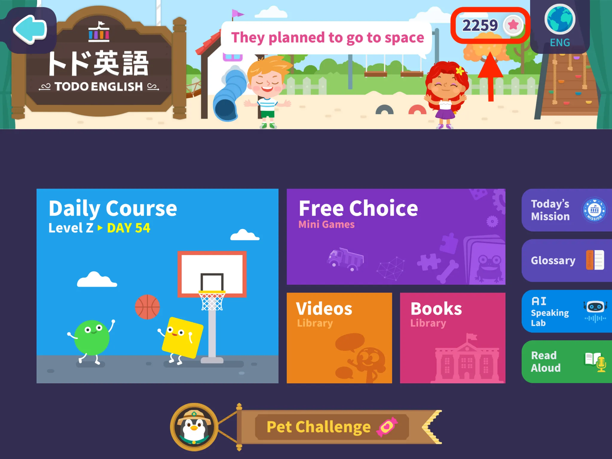 レベル選択が完了できたら、トド英語で楽しい学習を始めてみましょう。