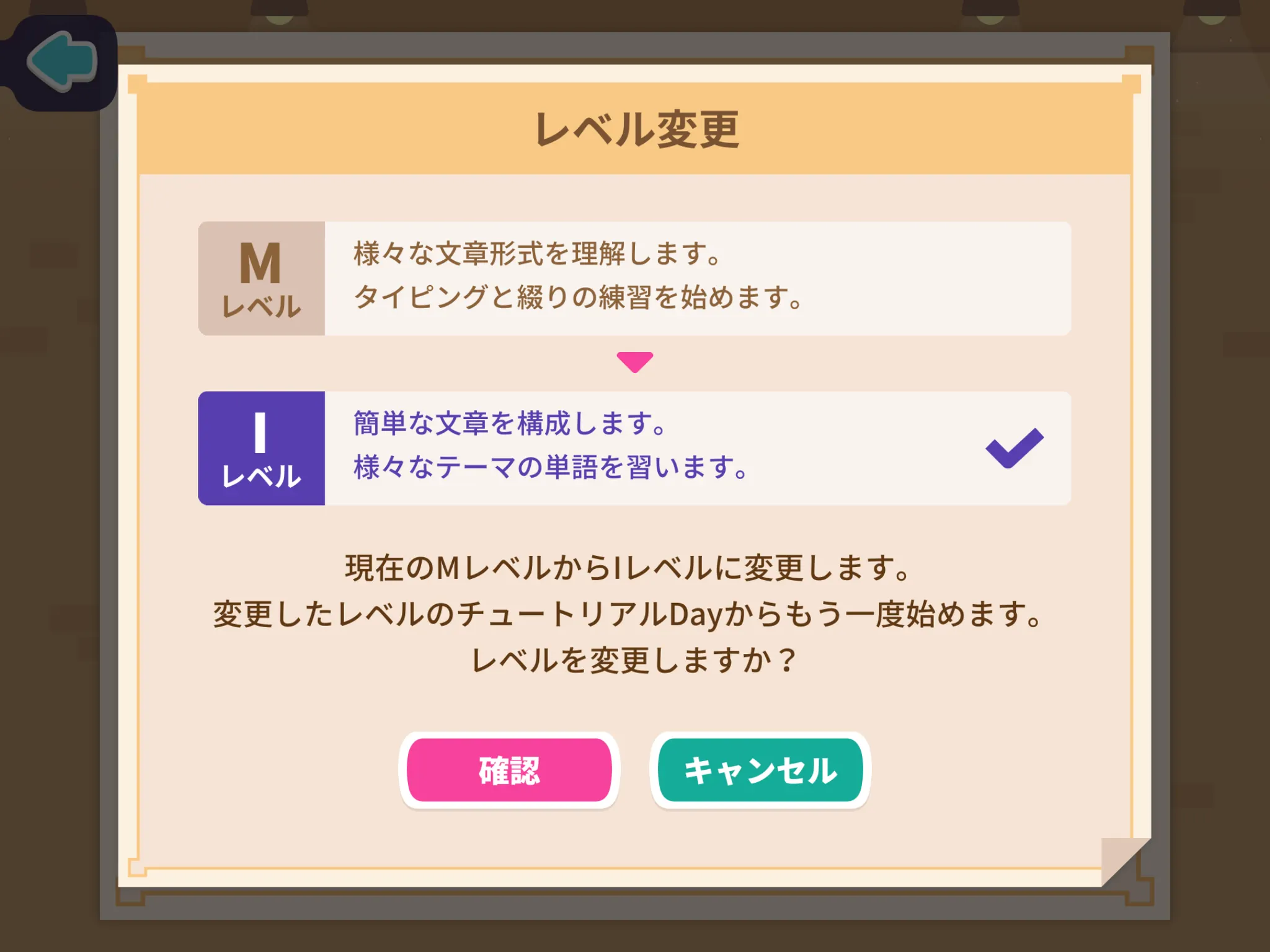 レベル変更画面が表示されたら「確認」をタップしてください。