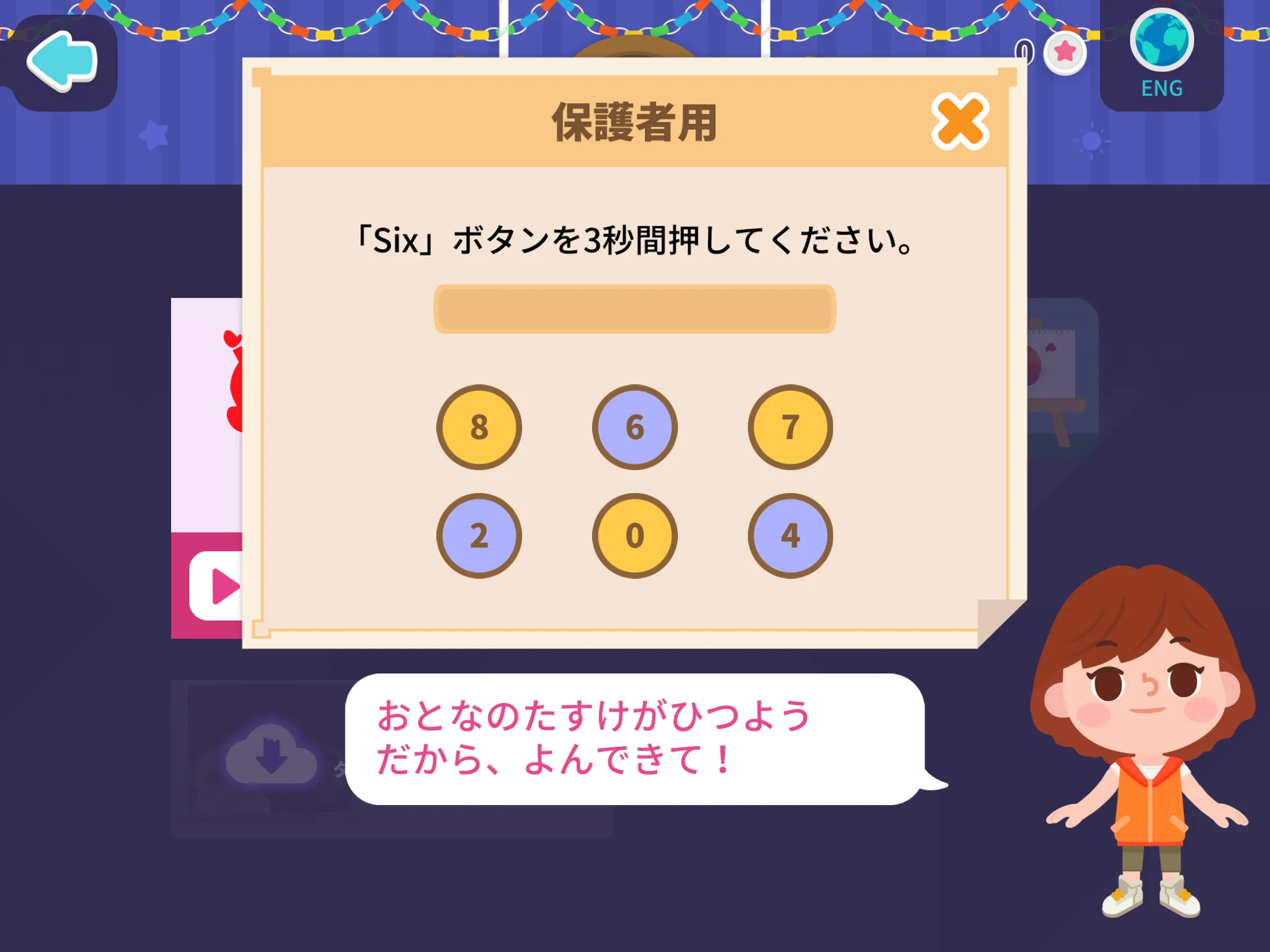 3.「はい」をタップすると、保護者用ページに移動する画面が表示されるので、正しい数字を選択してください。