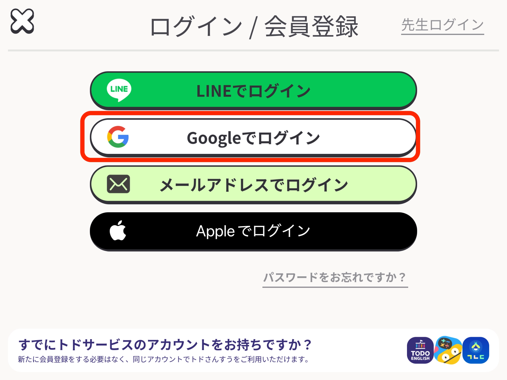 ログイン/会員登録画面が表示されたら、[Googleでログイン]をタップしてください。