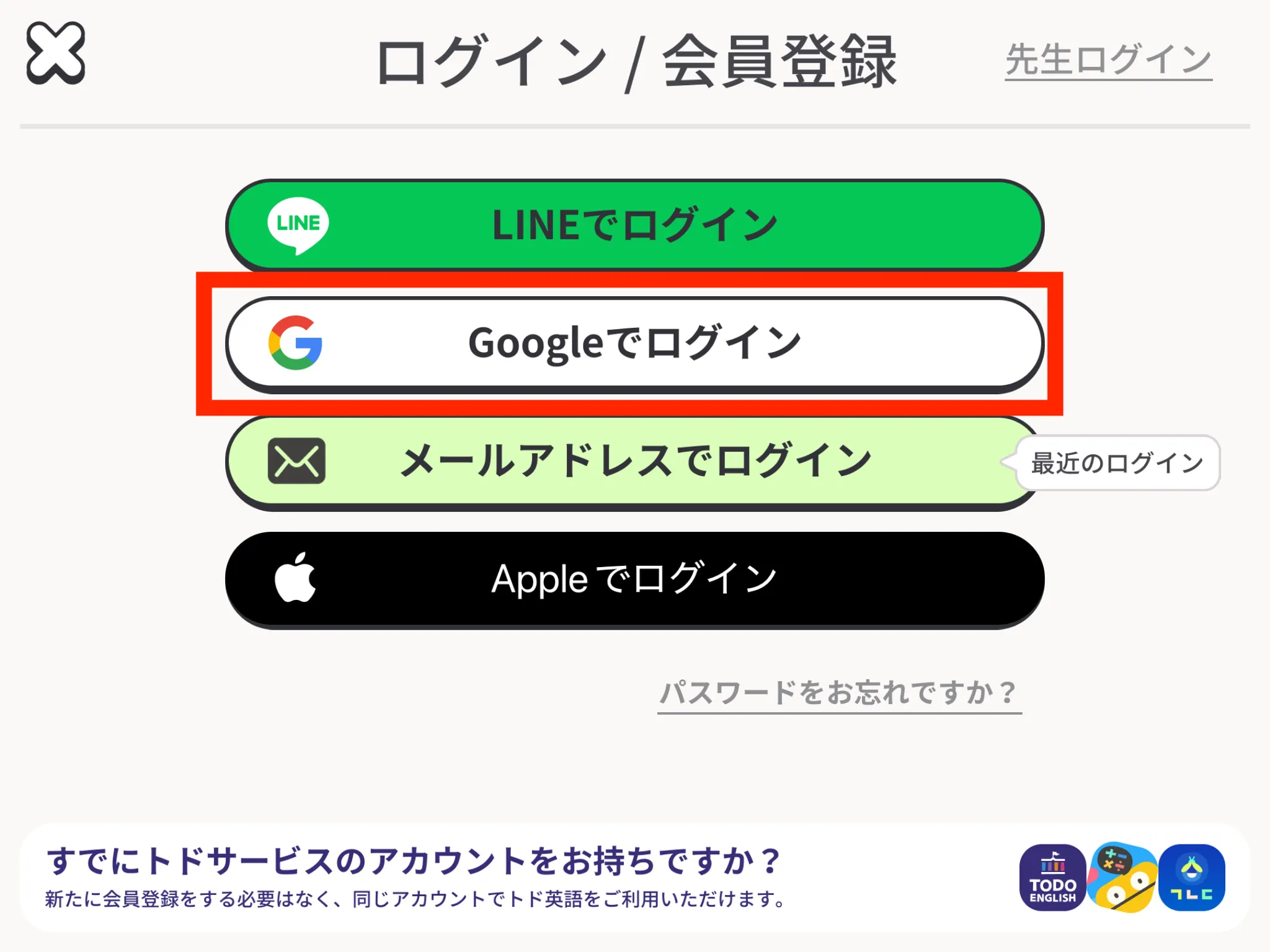 Googleログイン及び認証が完了すると、再びトド英語アプリに戻ります。