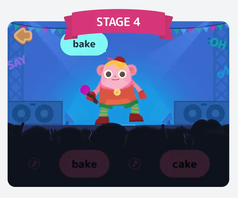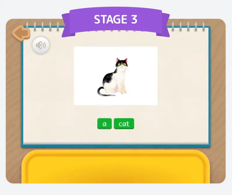単語の最初の音を認識し、区別ができます。フォニックスとテーマ別/必須単語の学習を本格的に始めます。ワードチャレンジ(Word Challenge)の挑戦が可能な段階でドリル(Drilling)学習が強化され、様々なスピーキング アクティビティ活動が拡大されます。