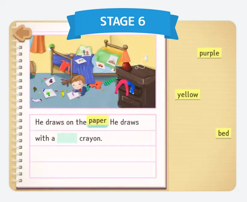 自分の感情や考えを短い文で表現できます。短母音と長母音の概念を習い、単語のスペルをより正確に読んで書くことができます。様々なテーマの必須単語を習得してフォニックスの発展学習と基礎文法の活用を続けて練習します。