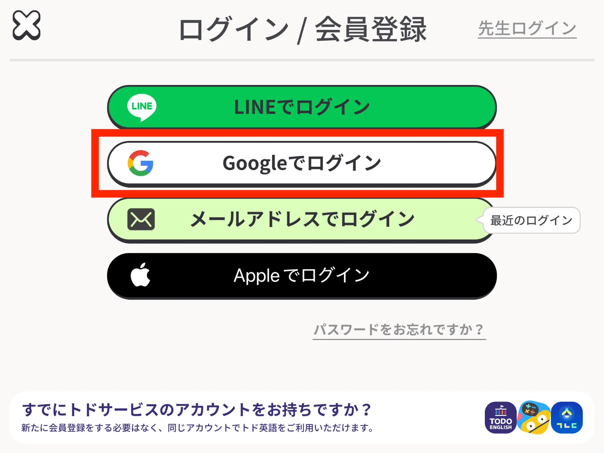 ログイン画面にある[Googleでログイン]をタップしてください。
