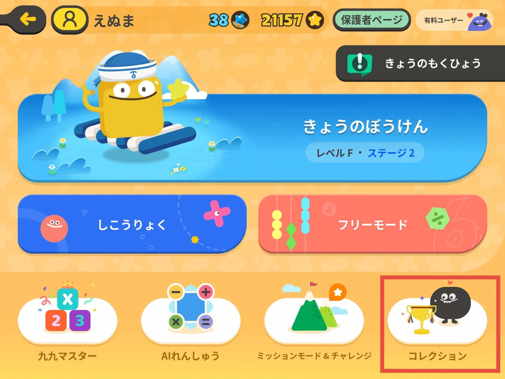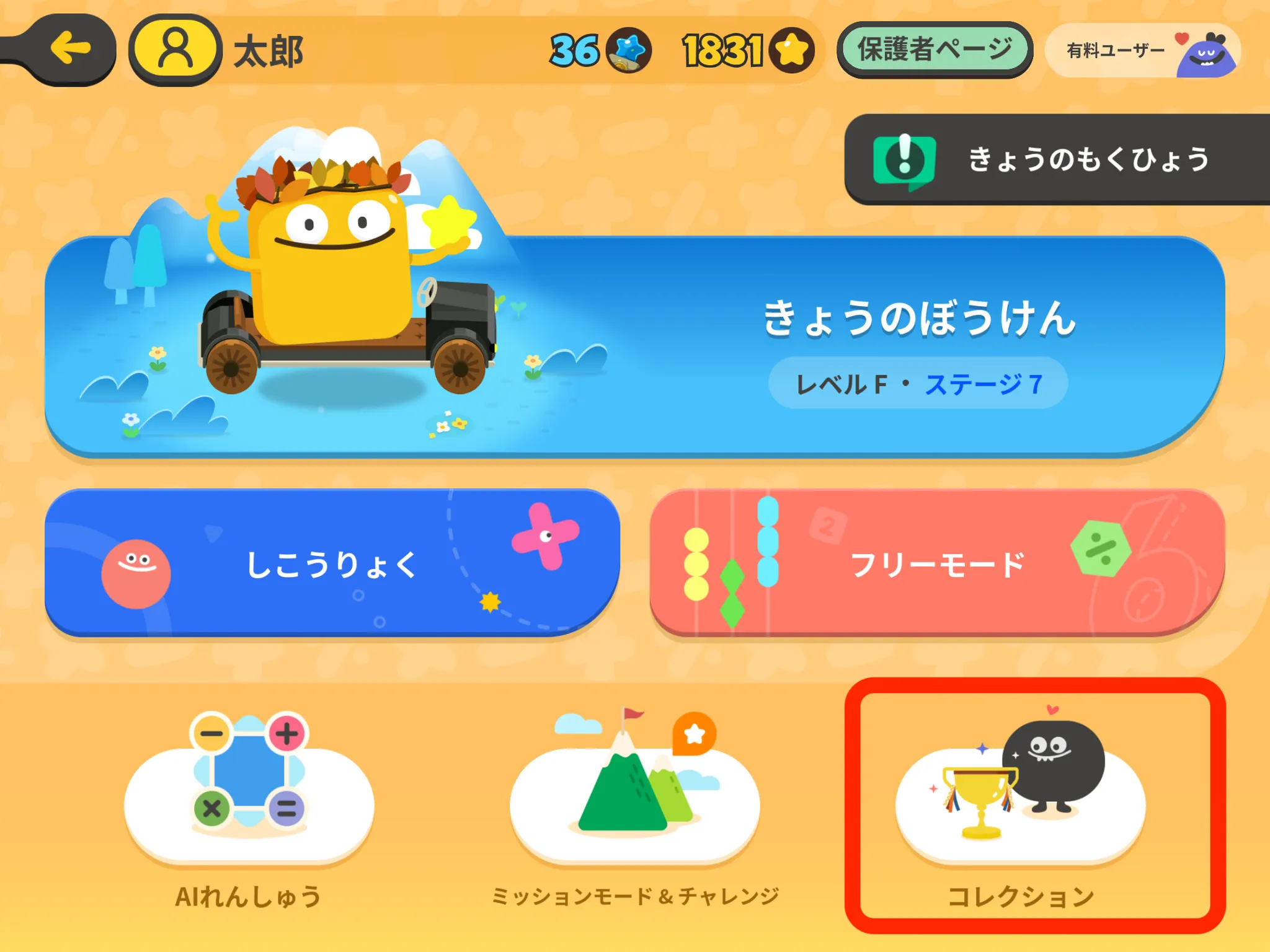 は、左側メニューの[AIけいさん][しこうりょく]をタップして確認できます。