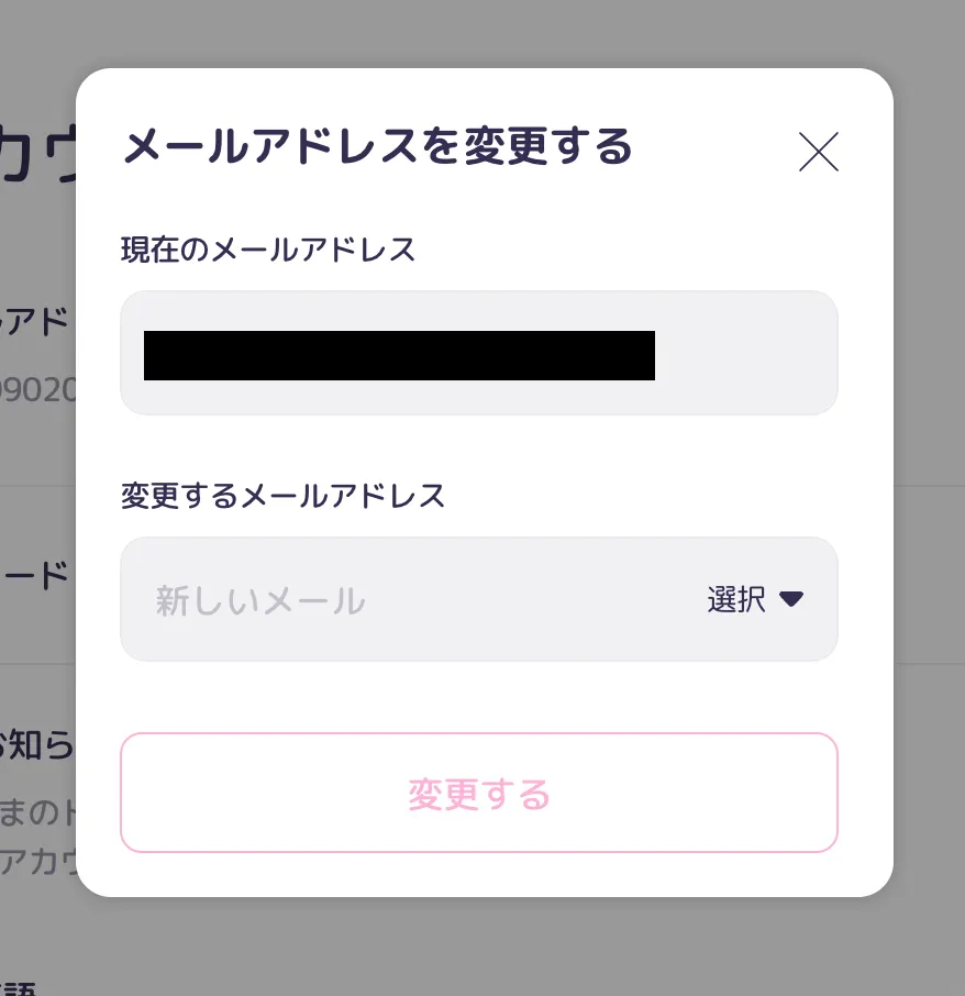 ※メールアドレスをまだ認証していない方は[変更する]が表示されませんので、[認証する]をタップし、認証後に変更をしてください。