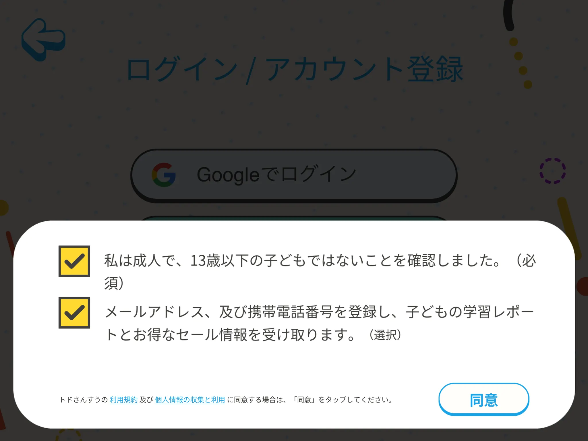 ※ メールの受け取りに同意いただけない場合、トドさんすうからの全てのメールが届きません