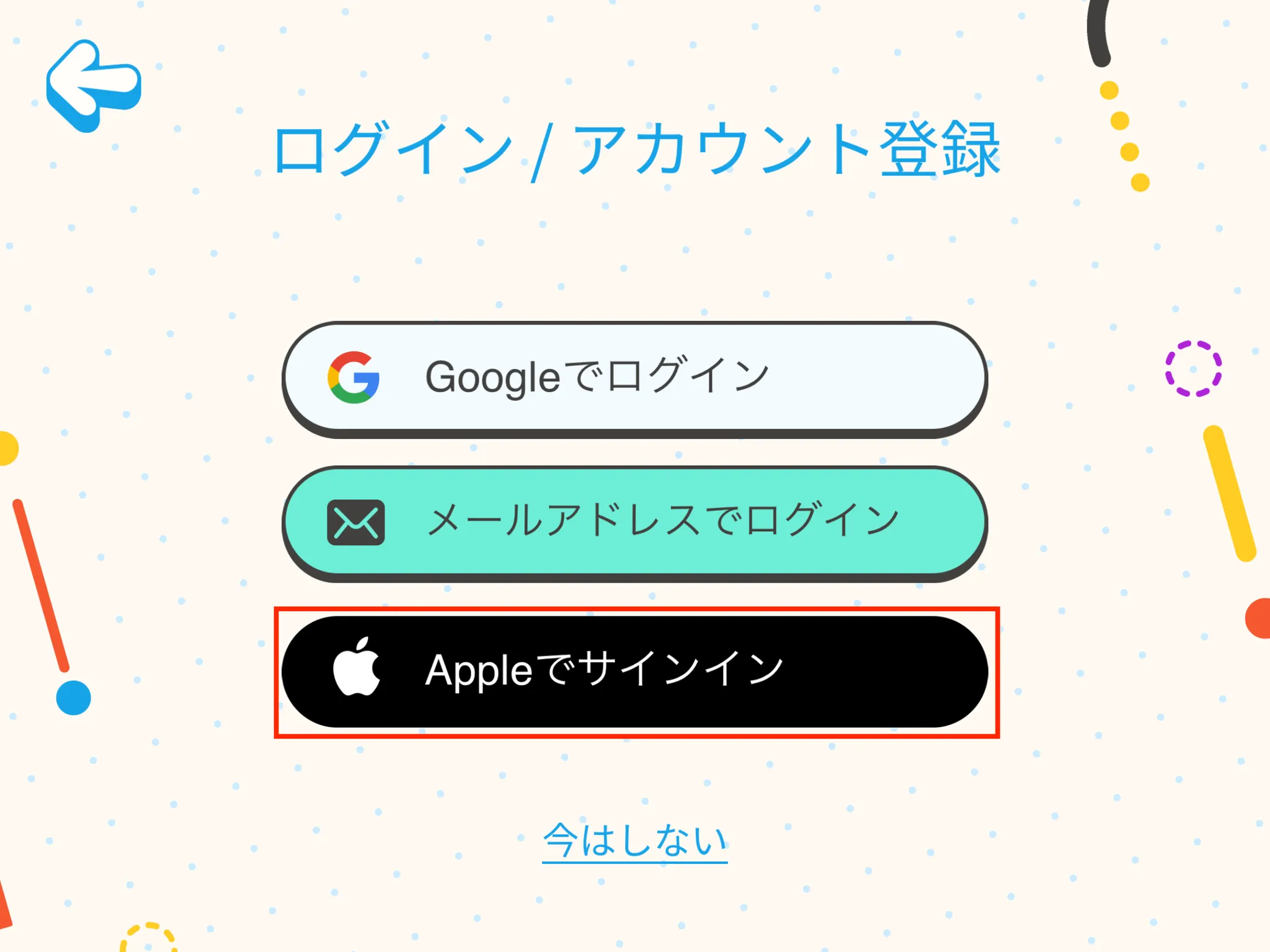 [スタート]をタップ後、以下画面で[Appleでサインイン]をタップしてください。