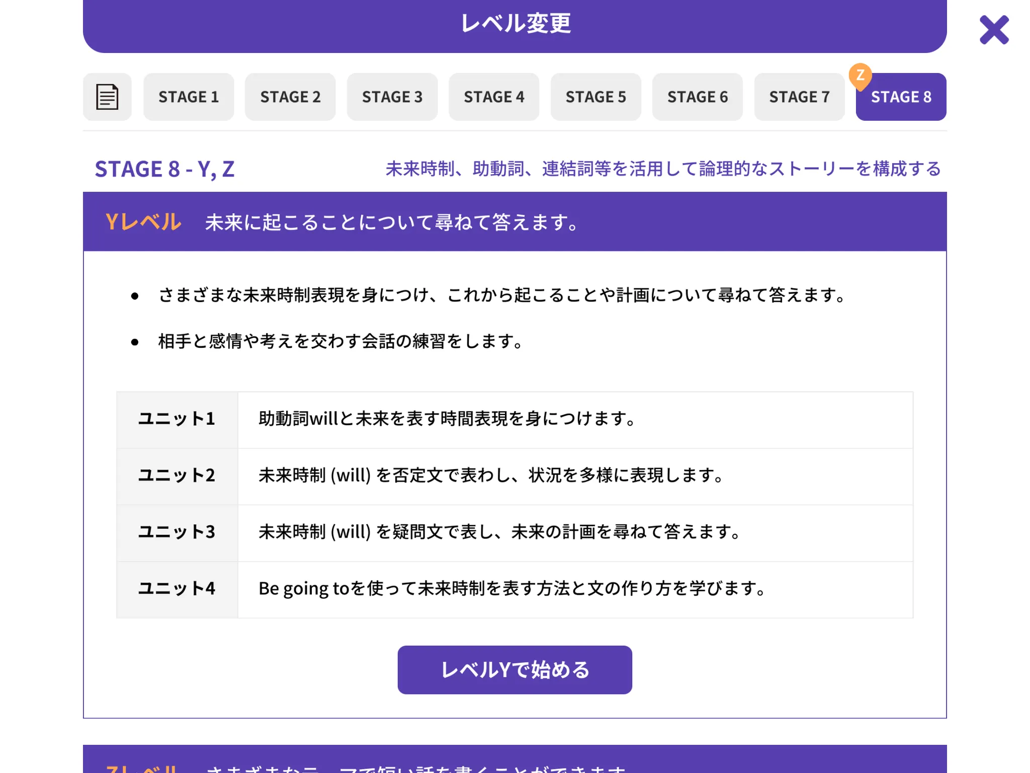 今の学習レベルがお子さまに合わなく、レベルを変更されたい場合は、以下をご覧ください。